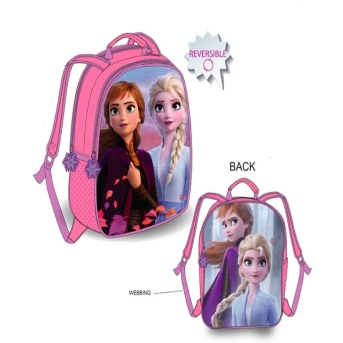 Su diseño reversible permite cambiar de estilo en un instante, ofreciendo dos looks en una sola mochila. Con personajes icónicos de Frozen, esta mochila no solo es funcional, sino también divertida y atractiva para los más pequeños.